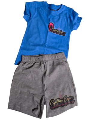Double printed logo shortset blue top grey bottom boys 18-24mos