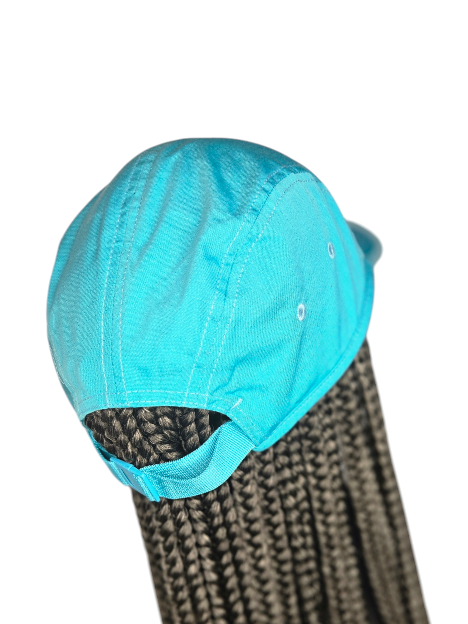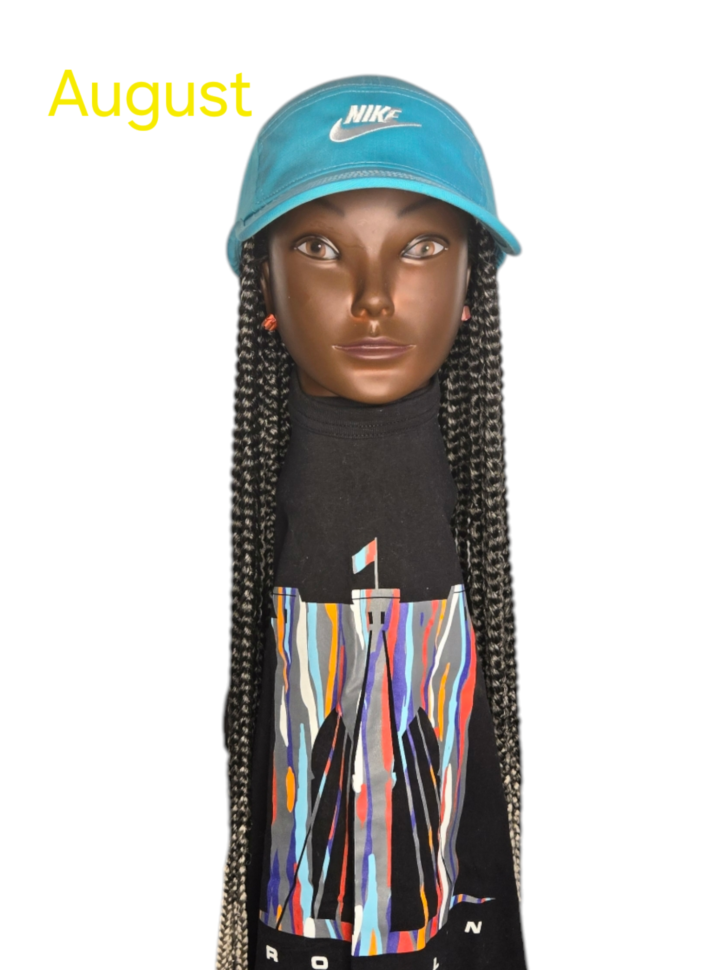 Turquoise M/L Nikey cap with silver and black synthetic box braids