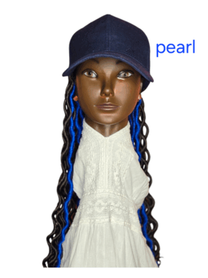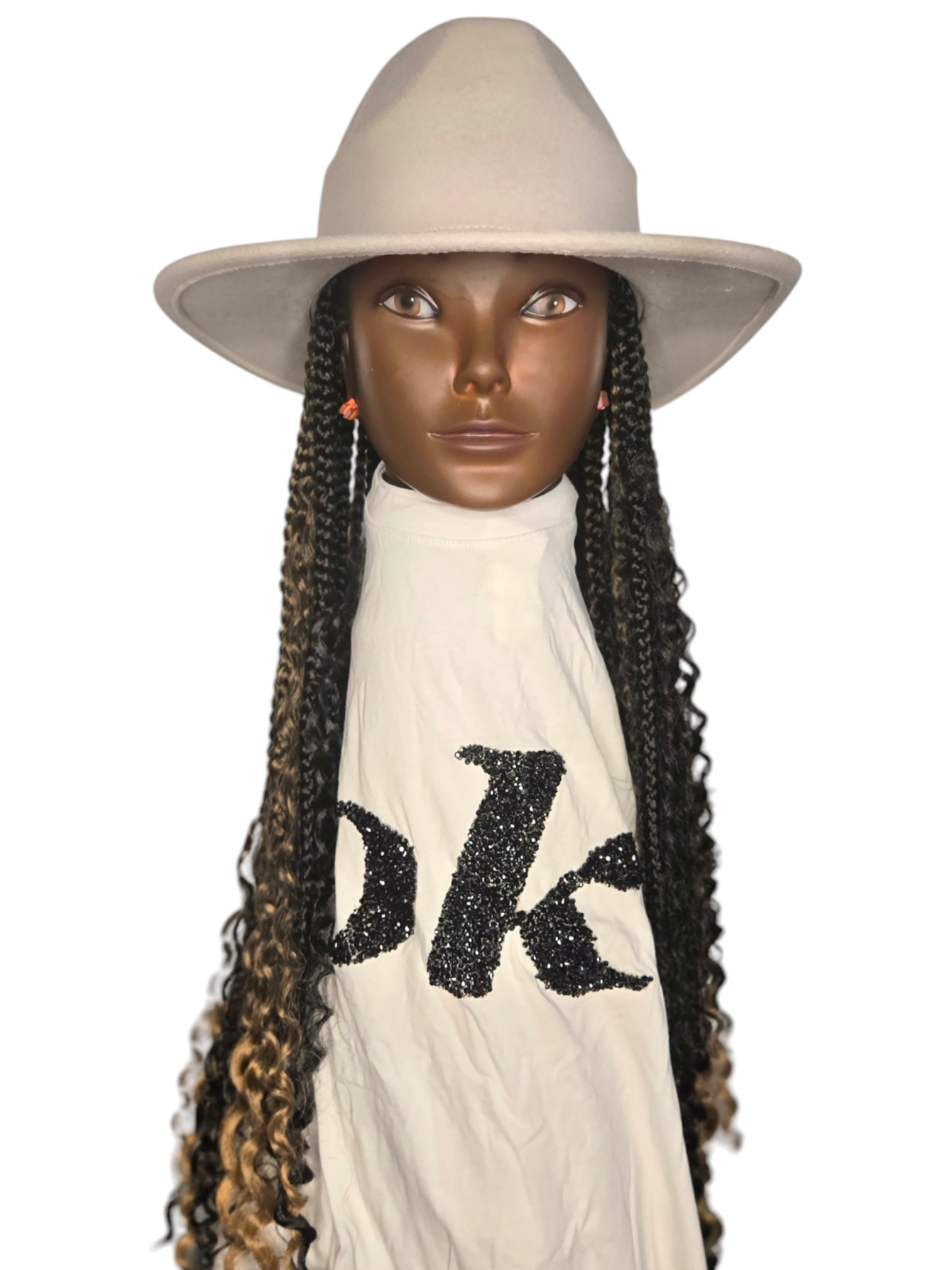 Description Light blue hat s/m with black and blonde synthetic knotless braids