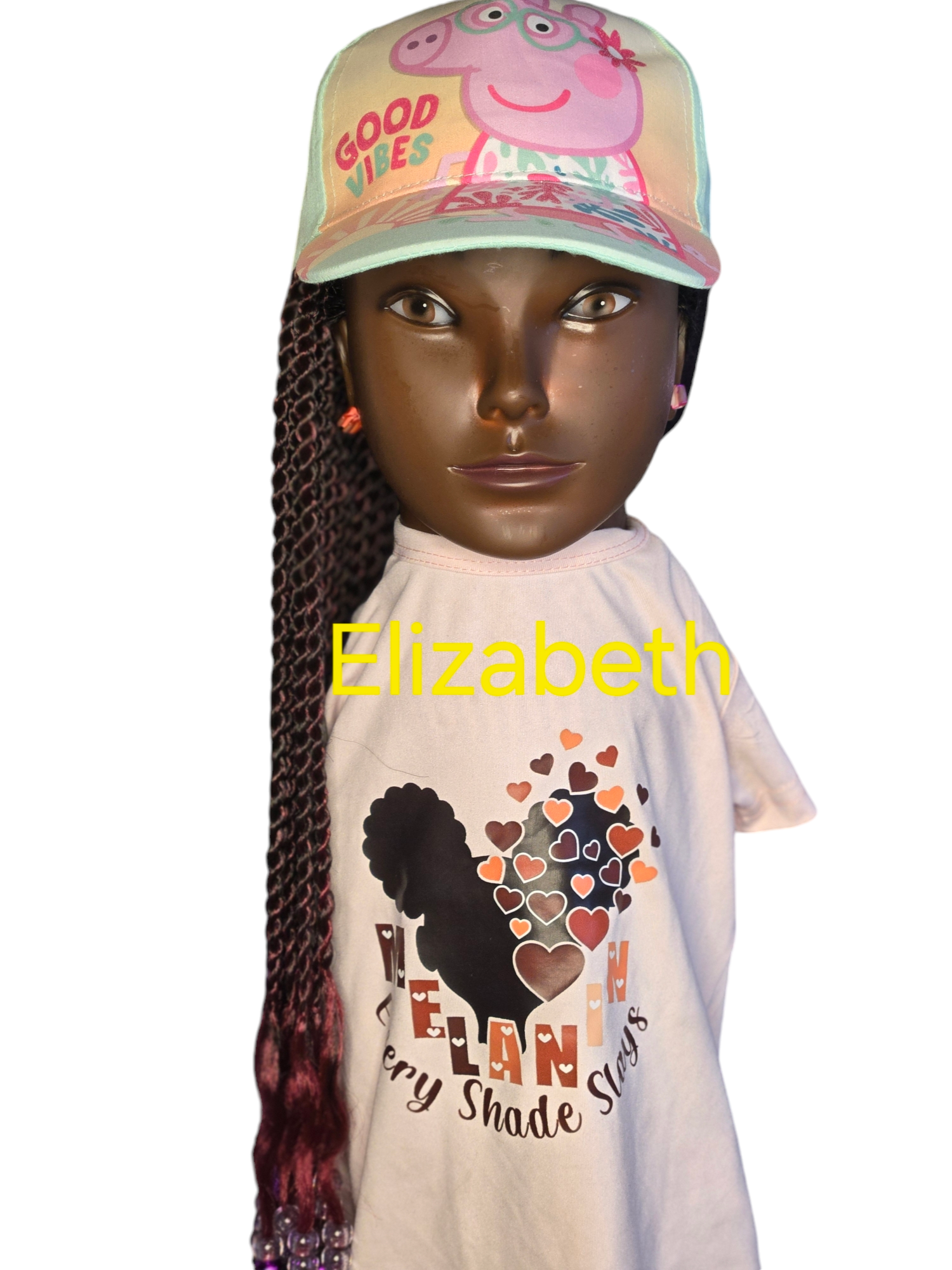 Printed cap with a burgundy synthetic twist with bees