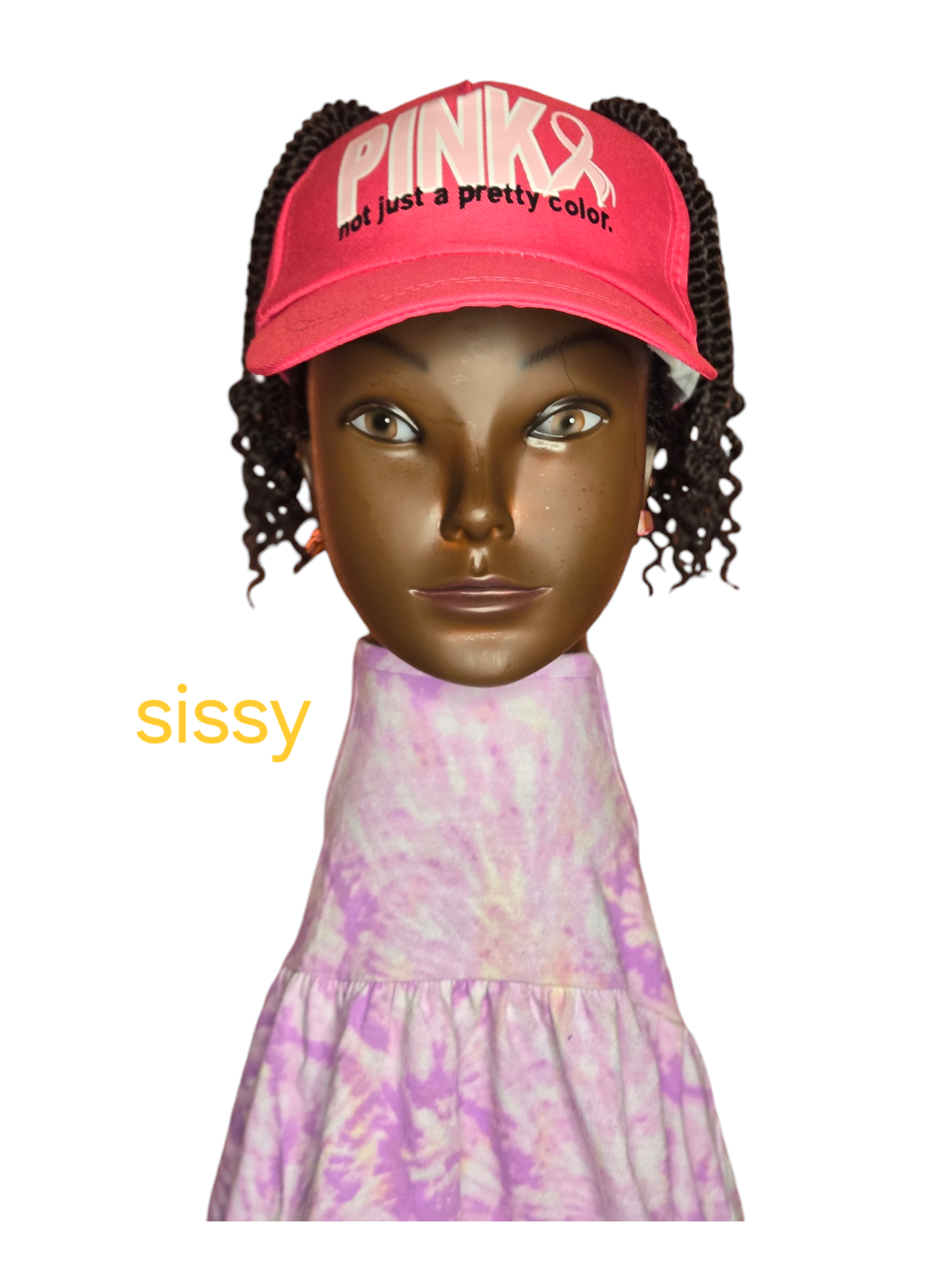 Pink cap (My ribbon 🎀) two ponytails brown synthetic twist